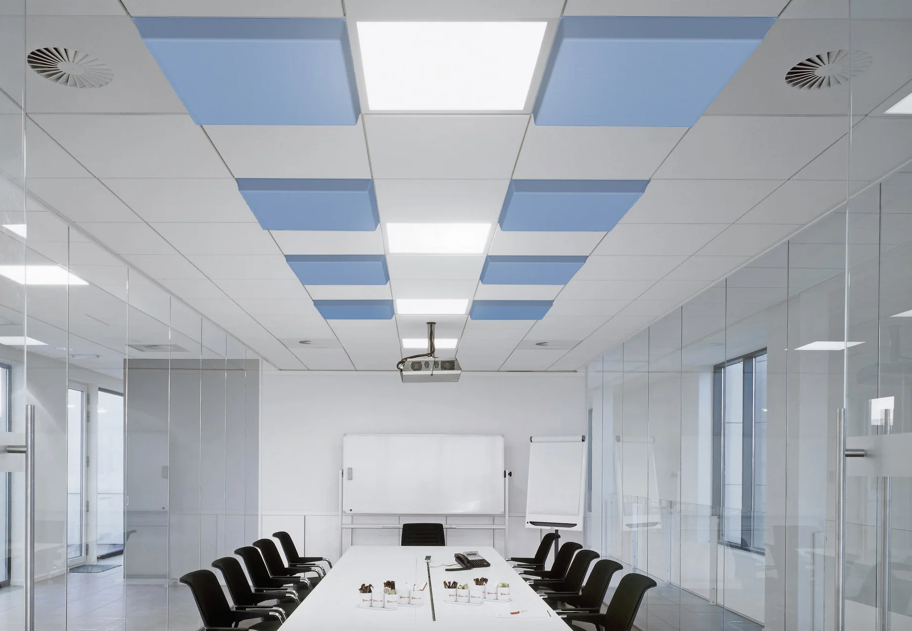 Float Ceiling tiles are a safe and easy to install solution for suspended ceiling systems. Built for sound control in open planned areas, Float is perfect for office and education spaces. Tiles can be configured easily by replacing existing tiles and colour options mean that design possibilities are endless.
